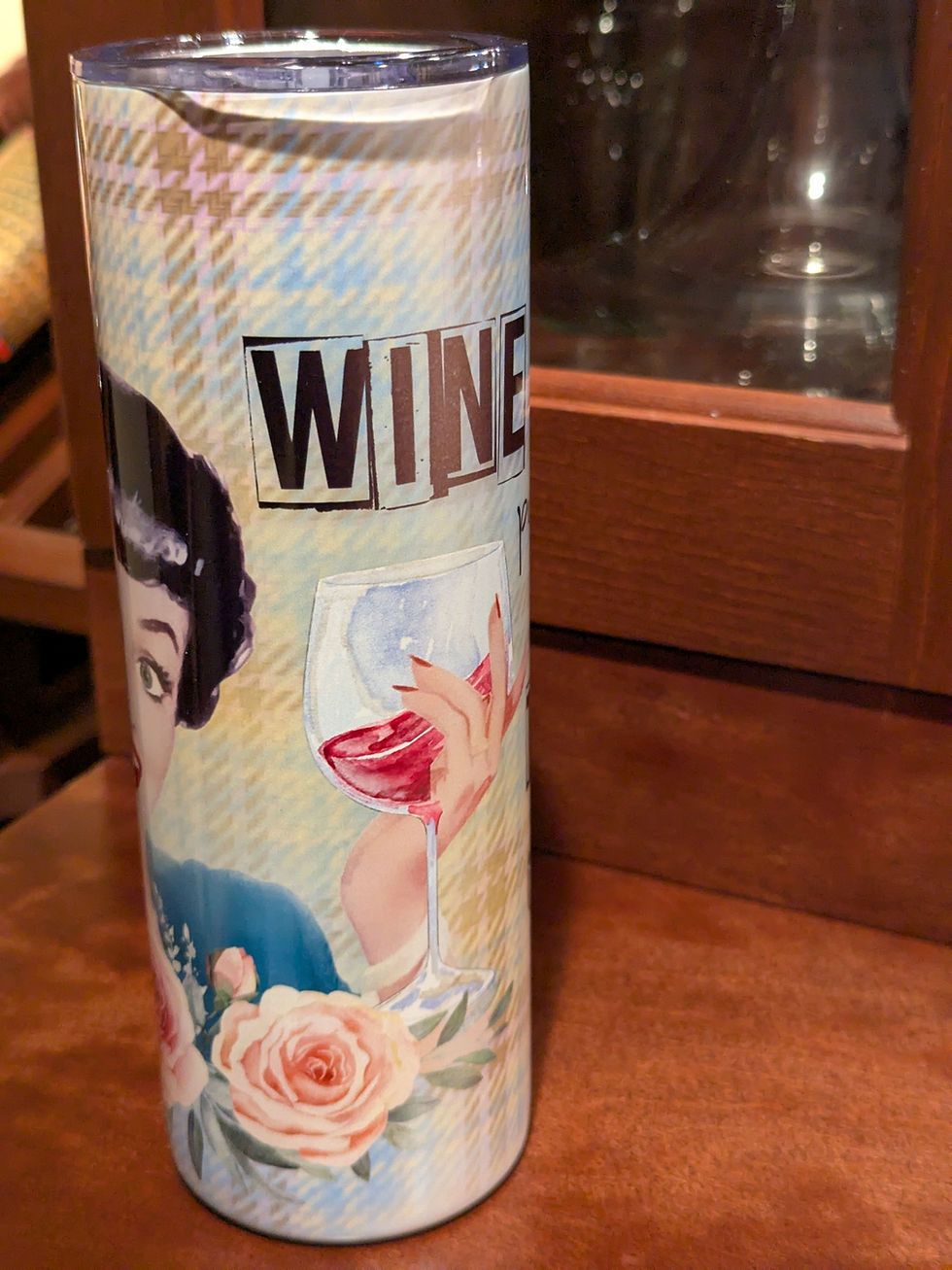20oz Skinny Tumbler Retro Housewife Wine Design Stainless Steel Insulated Cup