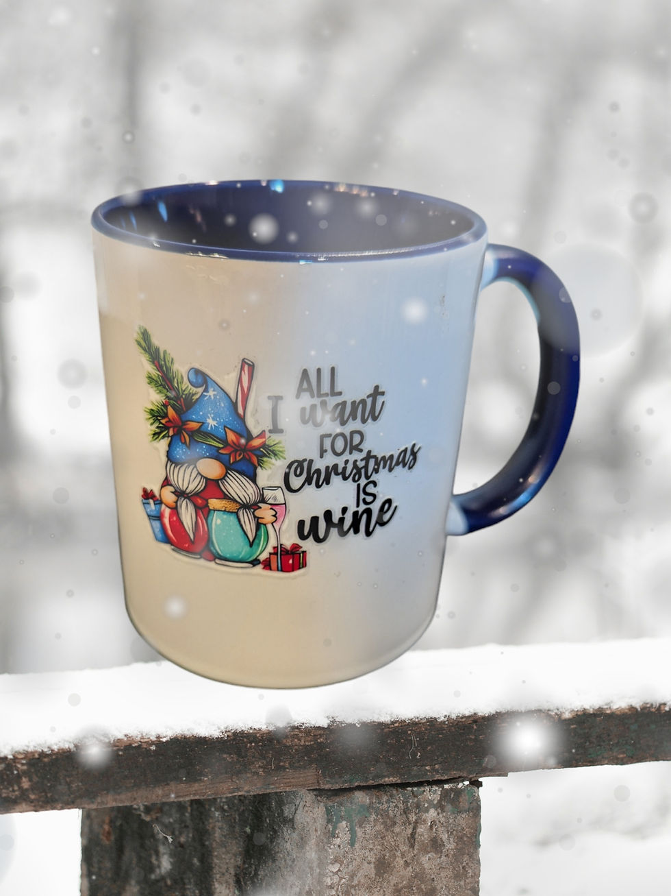"All I Want for Christmas is Wine" with Gnome 12oz Coffee Mug