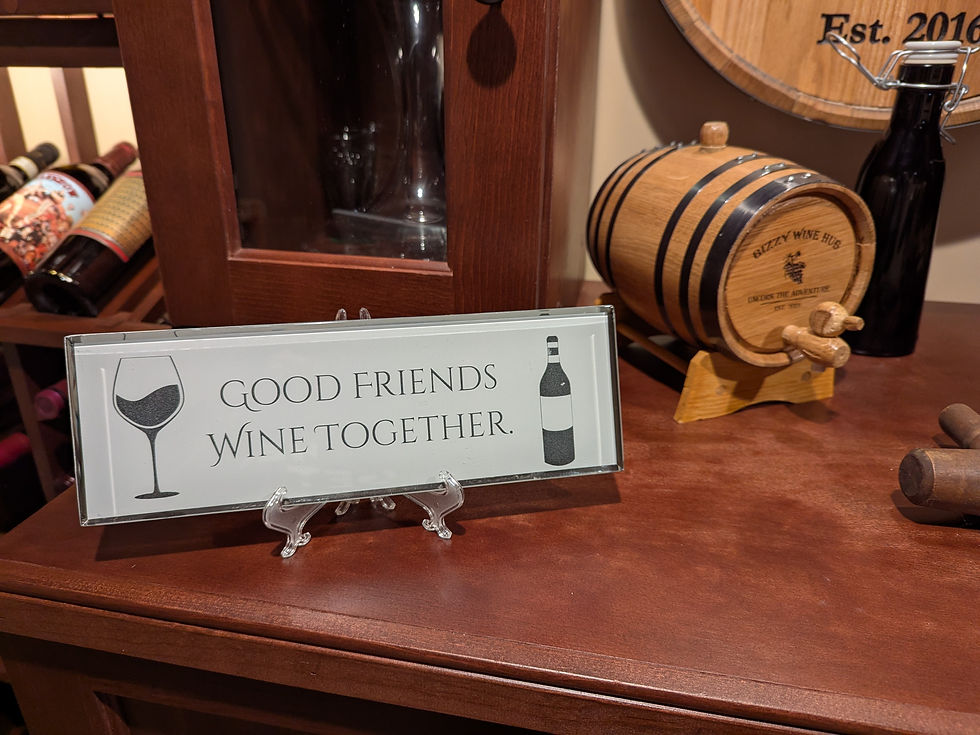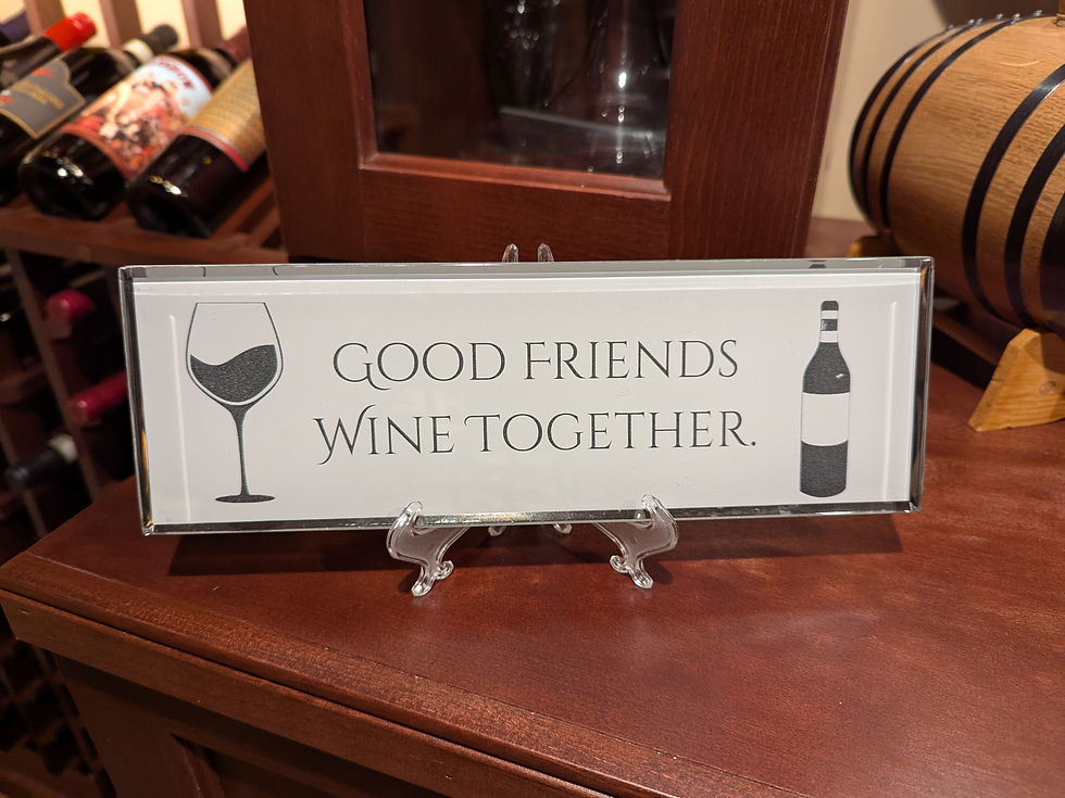 Engraved Glass Sign with Stand – Good Friends Wine Together – 12" x 4"